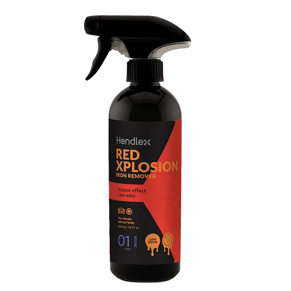 HENDLEX Red Xplosion Iron Remover is a professional, pH-neutral fallout remover that instantly dissolves and rinses away iron and brake dust from paint and wheels.